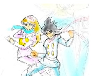 ちゃんと頭から足先まで書いてある、とっても珍しい(笑)らくがきだったので、写真に撮って、パソコンで色々やってました。