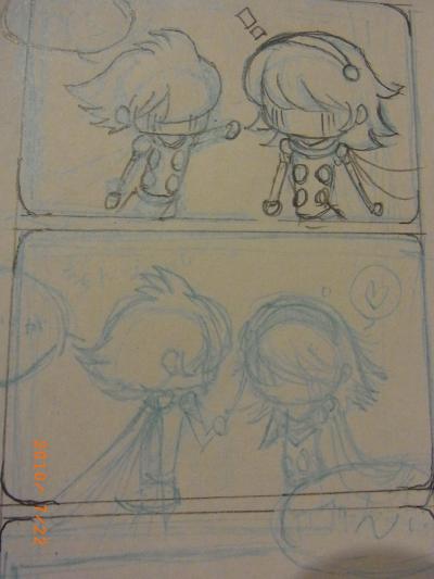 青っぽいのが下書き。黒いのが鉛筆で清書したのんです。