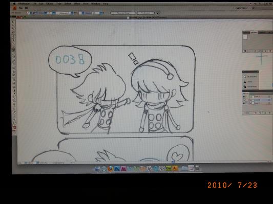 本当はいつも、青色で書いただけでスキャナに放り込んで速攻イラストレーターのソフトで線書きするところなんですけれど。
